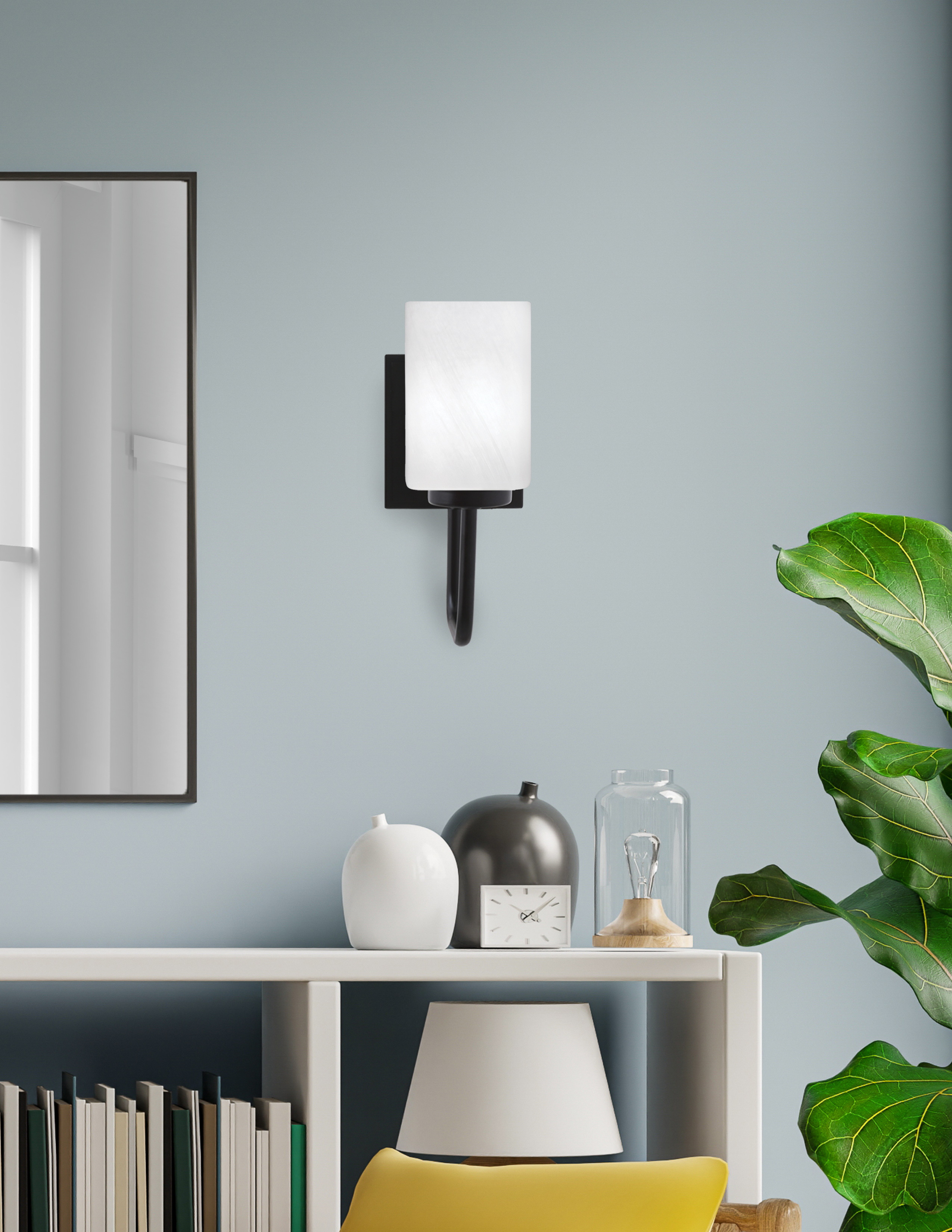 The Sandia 1 Light Wall Sconce combines modern design with subtle elegance. Its matte black finish provides a contemporary, bold look, while the 4″ white marble glass shade adds a touch of sophistication. The marble pattern creates a refined texture that softly diffuses light, bringing a warm and inviting ambiance to your space.