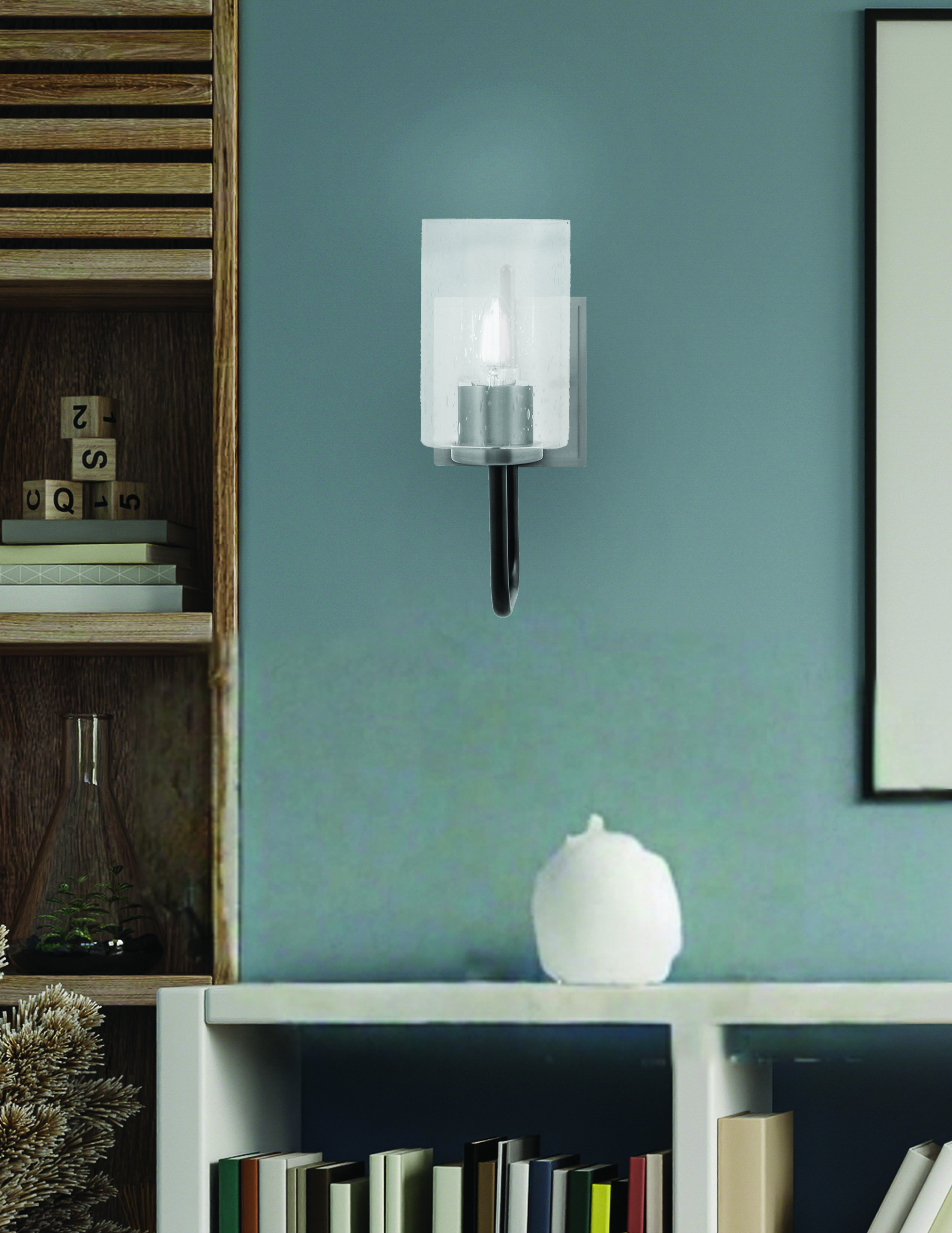 Elevate your space with the Sandia 1-Light Wall Sconce, a perfect blend of modern elegance and industrial charm. Featuring a striking Matte Black & Graphite Finish, this fixture adds depth and sophistication to any interior. The 4″ Clear Bubble Glass Shade enhances the light with a subtle texture, creating a warm and inviting ambiance.