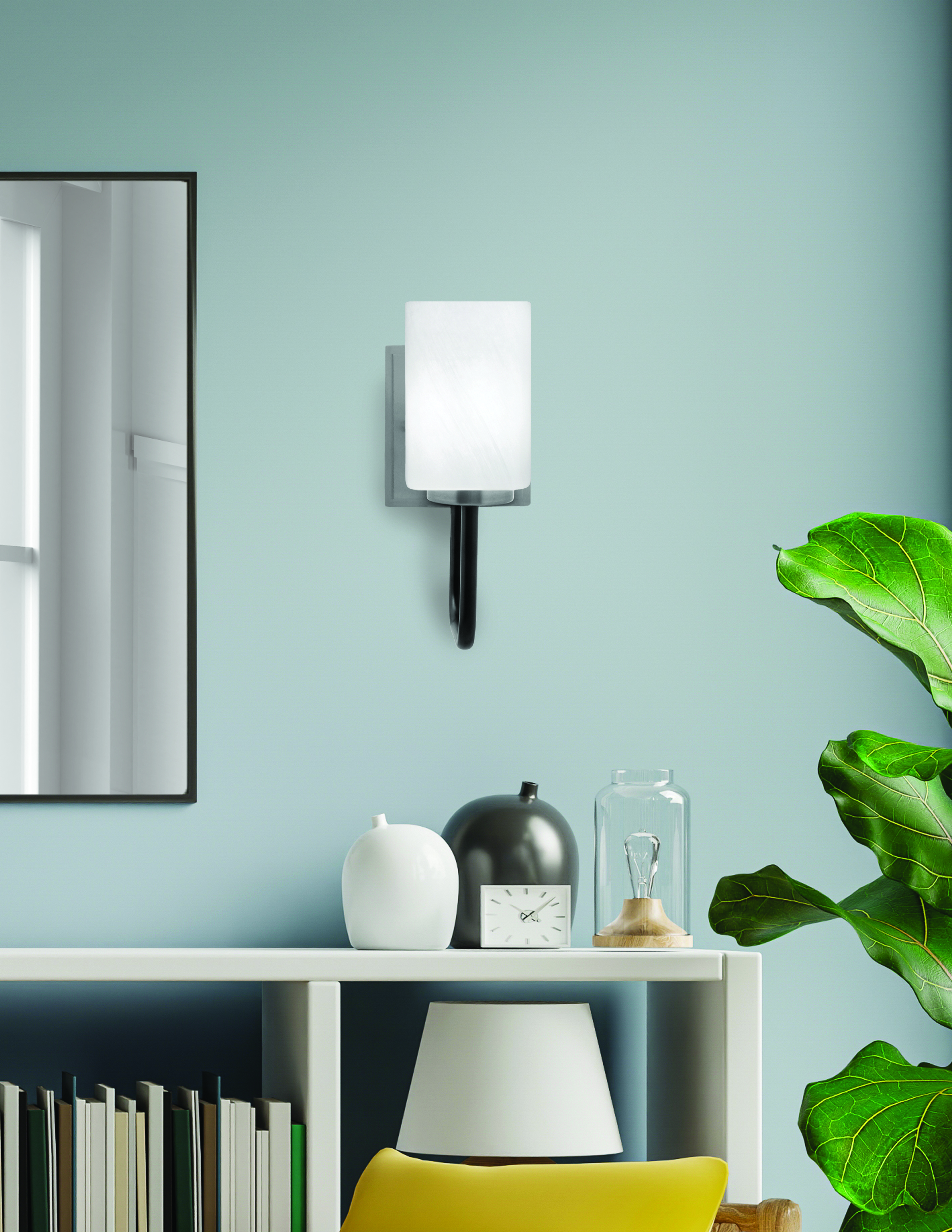 The Sandia 1-Light Wall Sconce brings a sophisticated touch to any space with its sleek Matte Black & Graphite Finish and timeless design. The 4″ White Marble Glass Shade adds an elegant touch, that creates a refined, upscale look while diffusing light beautifully. This sconce blends seamlessly with contemporary and transitional interiors, offering both style and functionality.