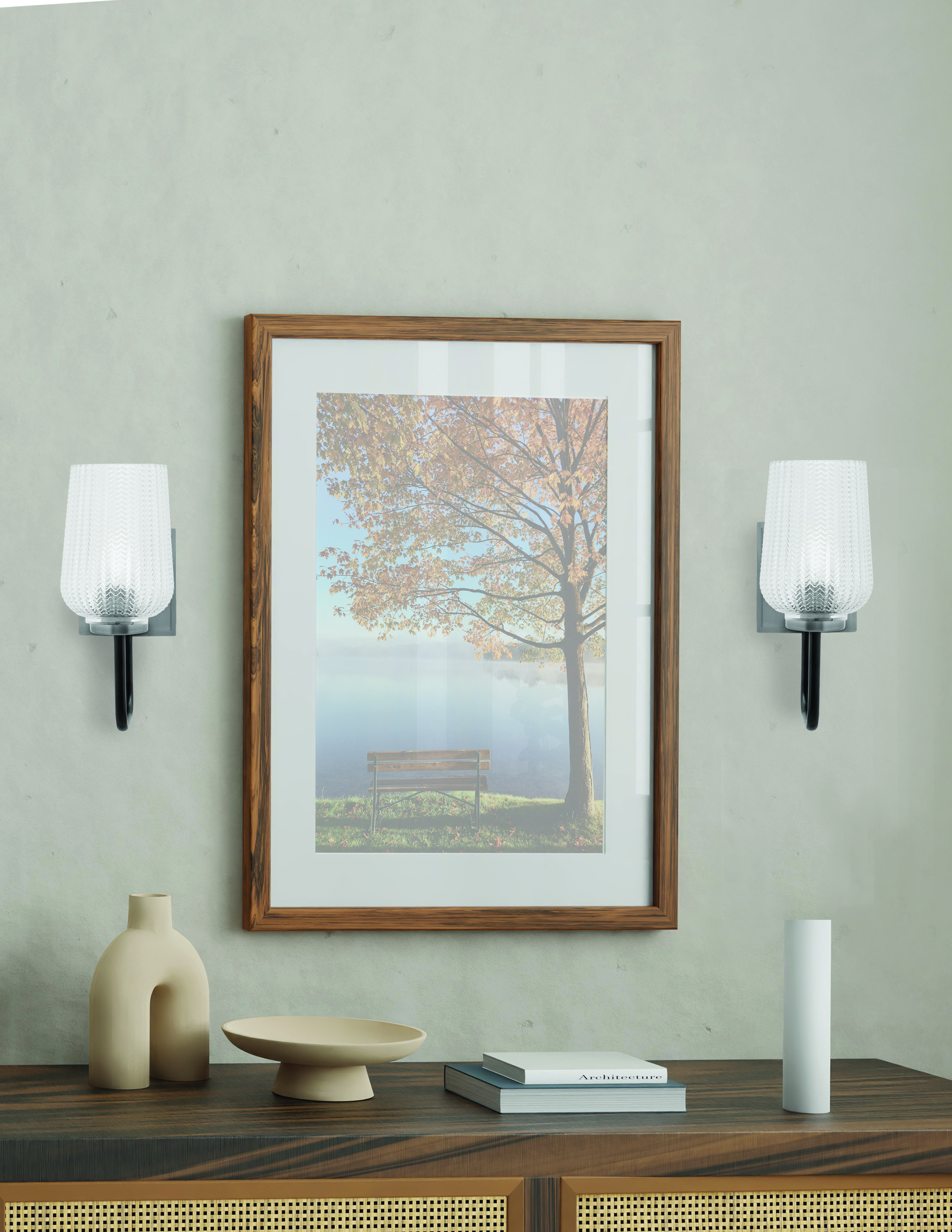 The Sandia 1-Light Wall Sconce blends modern sophistication with subtle texture, making it a perfect addition to any space. The bold Matte Black & Graphite Finish adds depth and contrast, while the 5″ Clear Textured Glass Shade enhances the light with its intricate surface, creating a beautifully diffused glow. This sconce seamlessly complements contemporary, industrial, and transitional interiors.