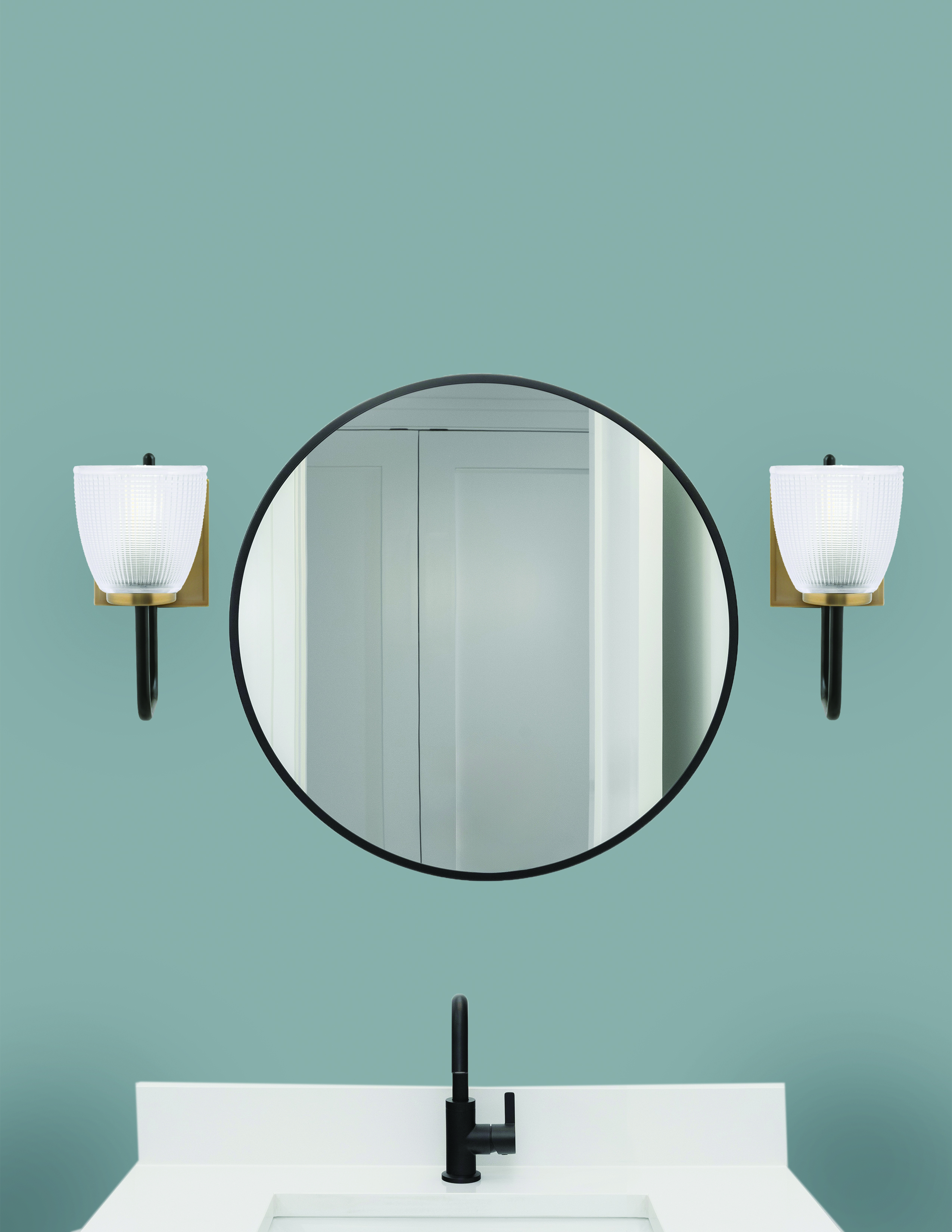 The Sandia 1 Light Wall Sconce brings a bold and contemporary edge to your home with its Matte Black and New Age Brass finishes. The 5″ Clear Ribbed Glass shade adds texture and character, casting a soft, inviting glow while enhancing the fixture’s unique design. Ideal for illuminating hallways, bathrooms, or accentuating living spaces.