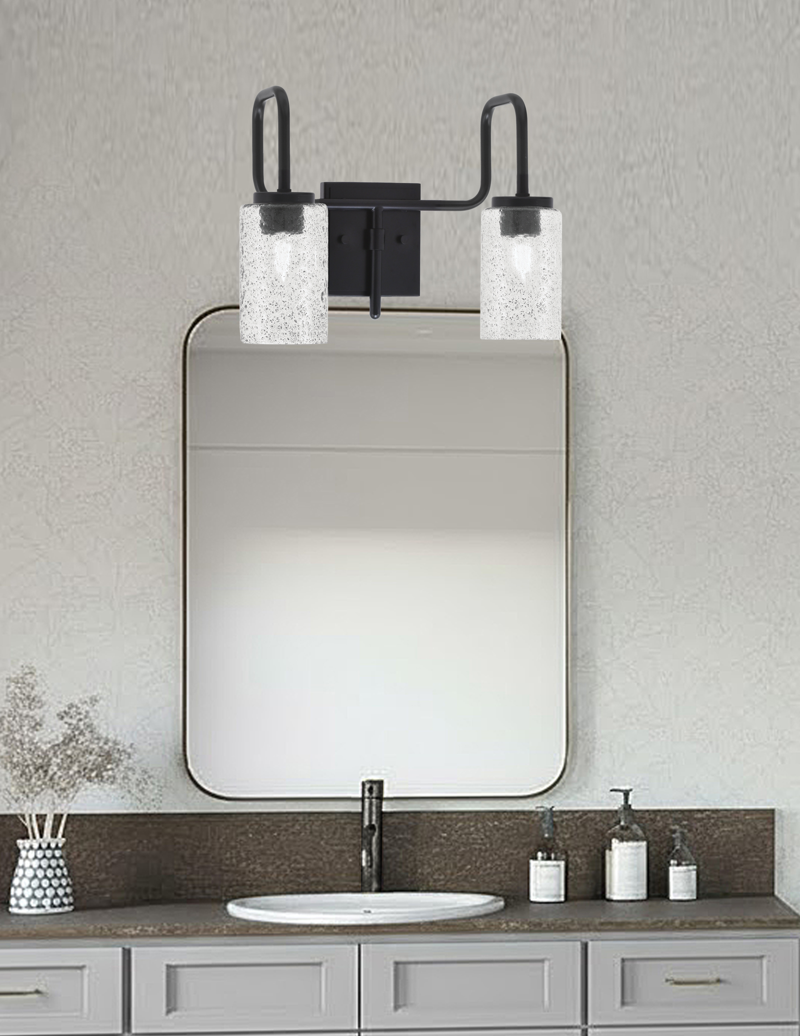 Add a touch of modern elegance to your bathroom with the Sandia 2-Light Bath Bar. Featuring a bold Matte Black Finish, this fixture creates a striking contrast that enhances a variety of decor styles. The 4″ Smoke Bubble Glass shades offer a unique, textured look, softly diffusing the light while adding depth and character to your space.