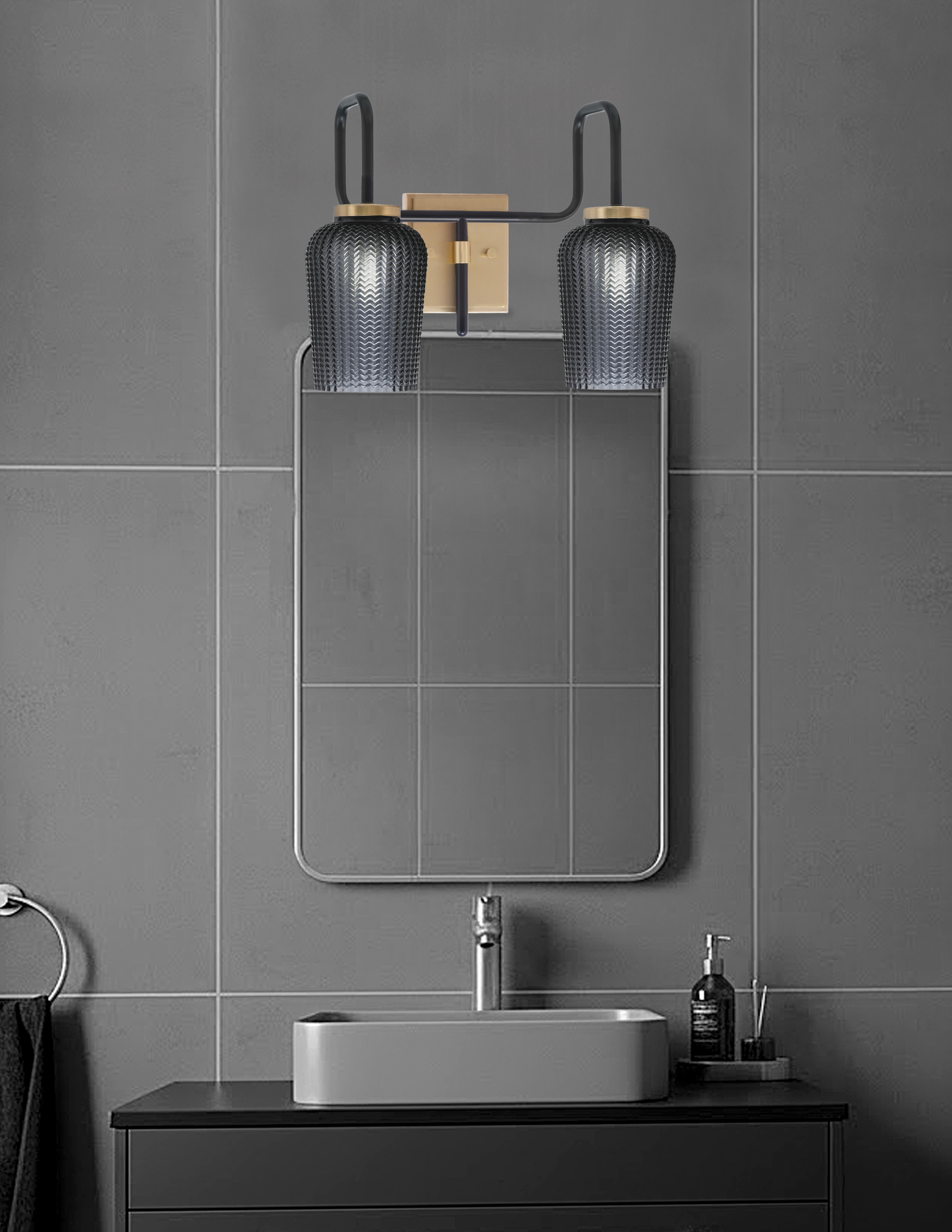 Elevate your bathroom’s lighting with the Toltec Lighting Sandia 2 Light Bath Bar. Featuring a sophisticated combination of Matte Black & New Age Brass finish, this fixture adds a modern yet timeless touch to your space. The 5″ Smoke Textured Glass shades offer a rich, smoky hue with a unique textured surface that diffuses light softly, creating a warm and inviting atmosphere in any bathroom.