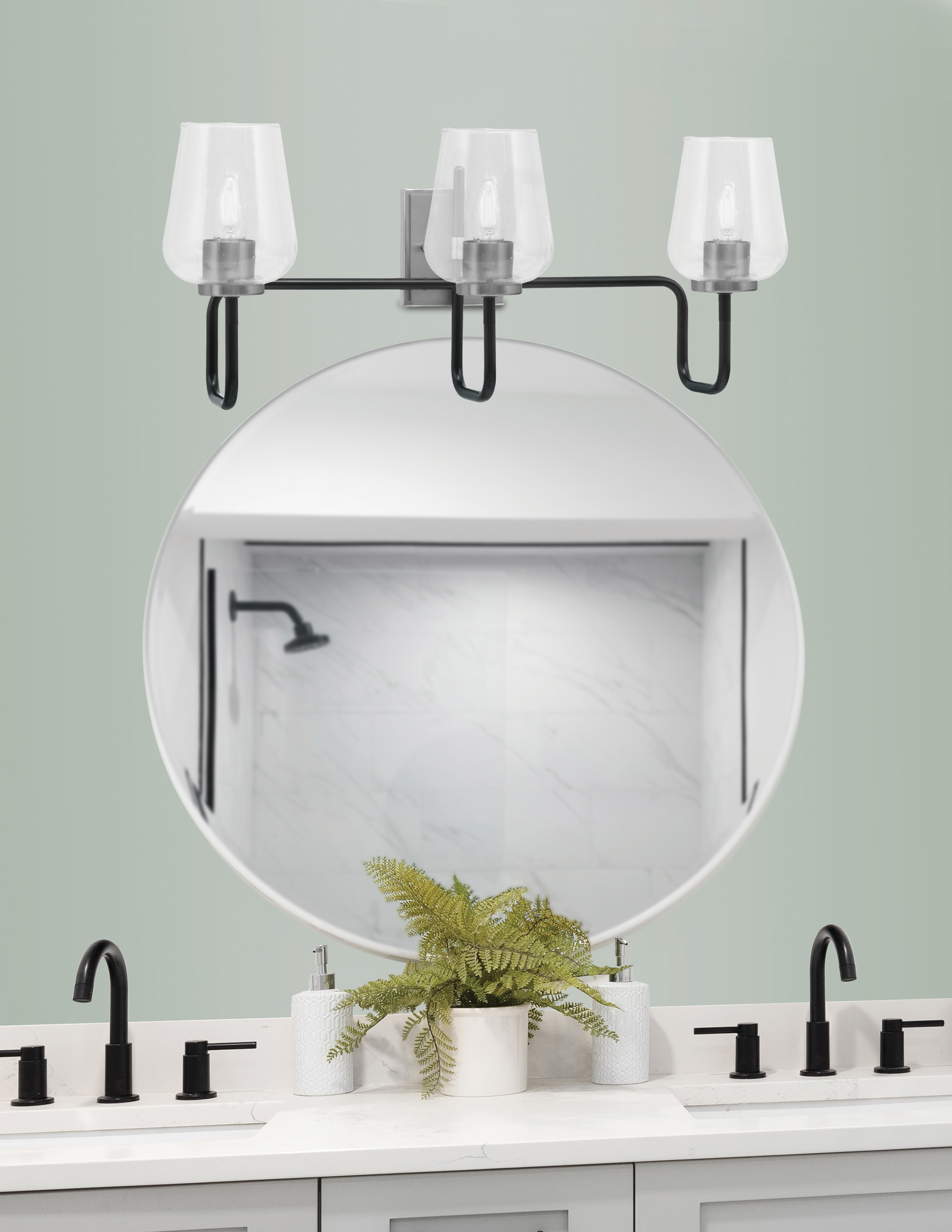 Add a touch of timeless sophistication to your bathroom with the Sandia 3 Light Bath Bar. Featuring 5″ Clear Bubble Glass shades, this fixture delivers a soft, diffused glow that enhances the ambiance of your space. The Matte Black & Graphite finish brings a modern industrial flair, effortlessly blending with both traditional and contemporary bathroom styles.