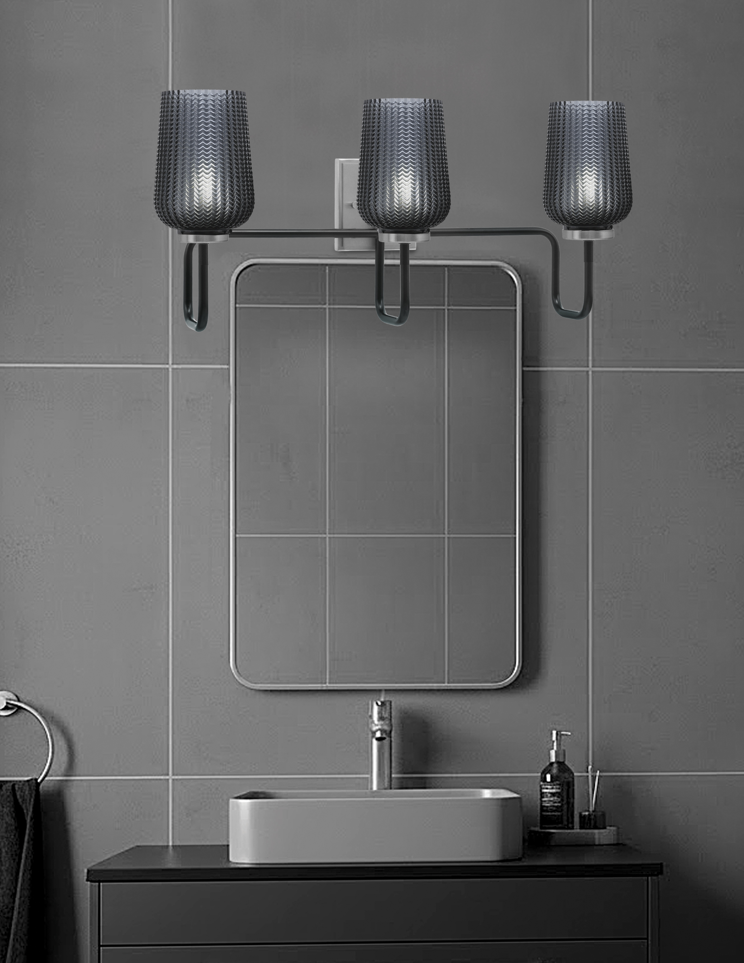 Add a touch of drama and sophistication to your bathroom with the Sandia 3 Light Bath Bar. Featuring a striking matte black and graphite finish, this bath bar is paired with 5″ smoke textured glass shades that exude a refined, smoky allure. Ideal for modern bathrooms or powder rooms, this fixture brings style and elegance.