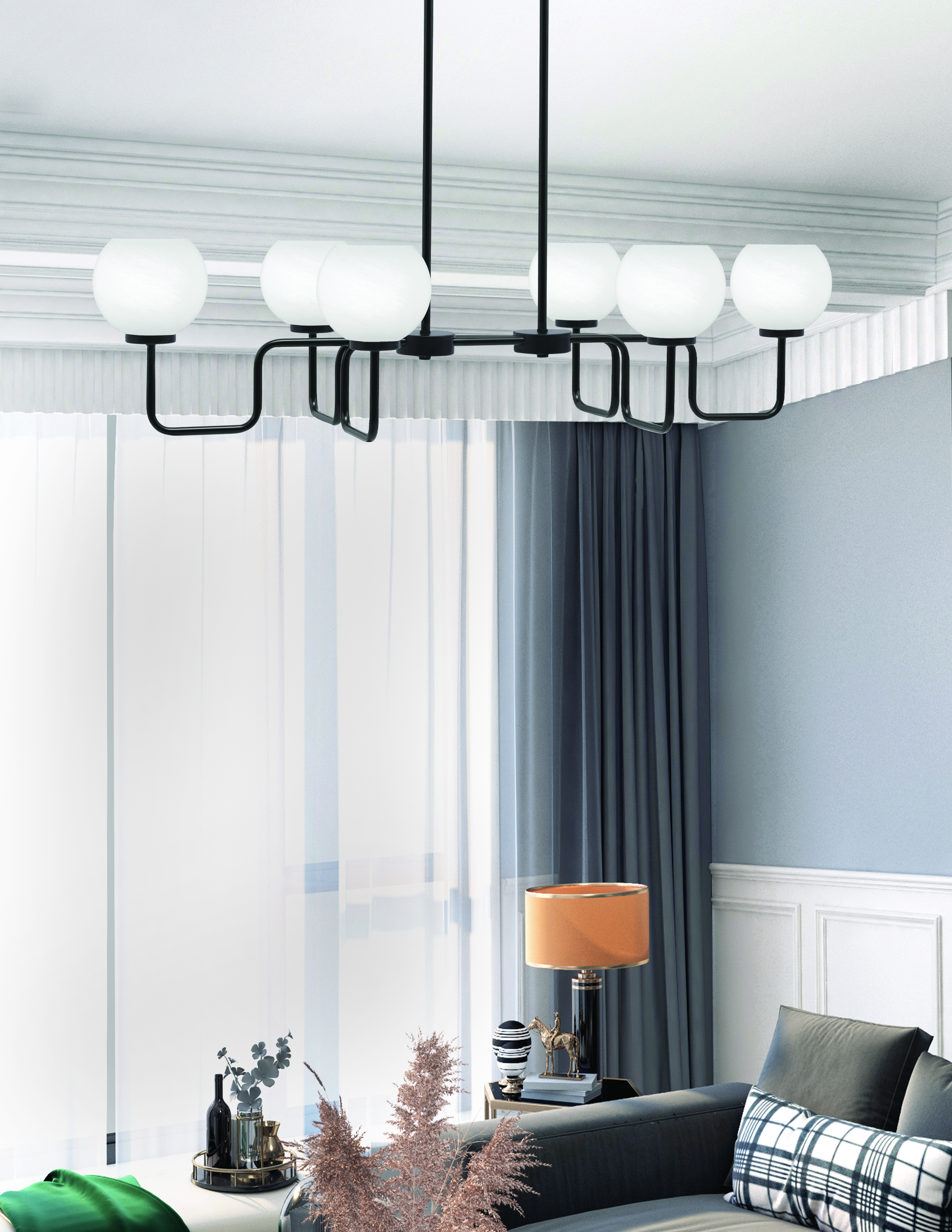 Bring timeless elegance to your space with the Sandia 6 Light Island Light. Featuring a sophisticated Matte Black finish, this fixture is paired with 5.75″ White Marble Glass shades, which offer a soft, luxurious glow. Ideal for kitchen islands, dining areas, or open-concept spaces, this fixture brings a perfect balance of elegance and functionality.