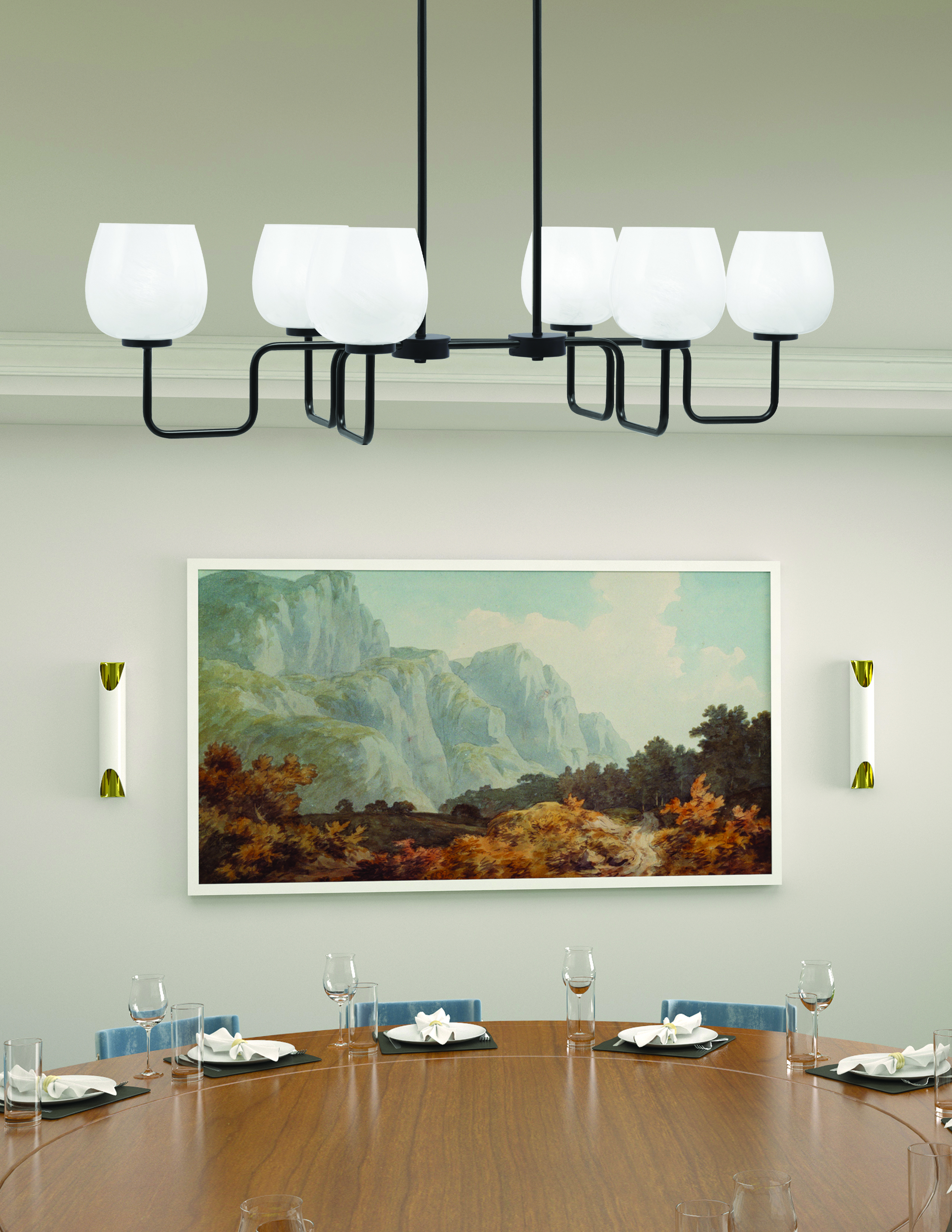 Elevate your space with the Sandia 6 Light Island Light featuring a sleek Matte Black finish and stunning 6″ White Marble Glass shades. The white marble glass offers a clean, sophisticated look while diffusing light gently throughout the room. Ideal for kitchens, dining areas, or any space that benefits from modern style and illumination.