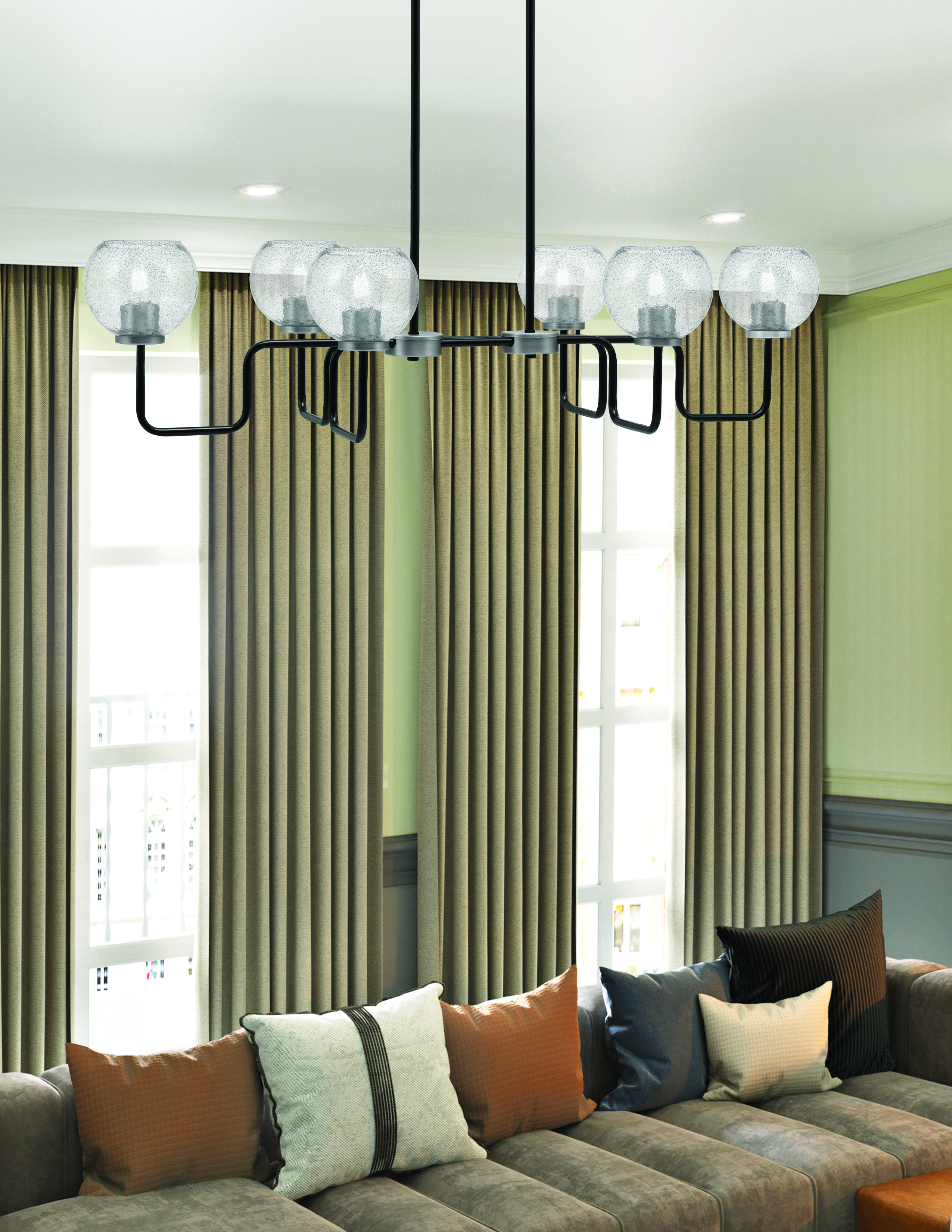 Create a striking focal point in your home with the Sandia 6 Light Island Light. Six 5.75-inch smoke bubble glass shades create a beautiful interplay of light with their textured, smoke-colored surface. The combination of dark matte tones and sleek graphite accents enhances the visual interest, making it a perfect fit for larger spaces such as kitchens, dining rooms, or open-concept living areas.