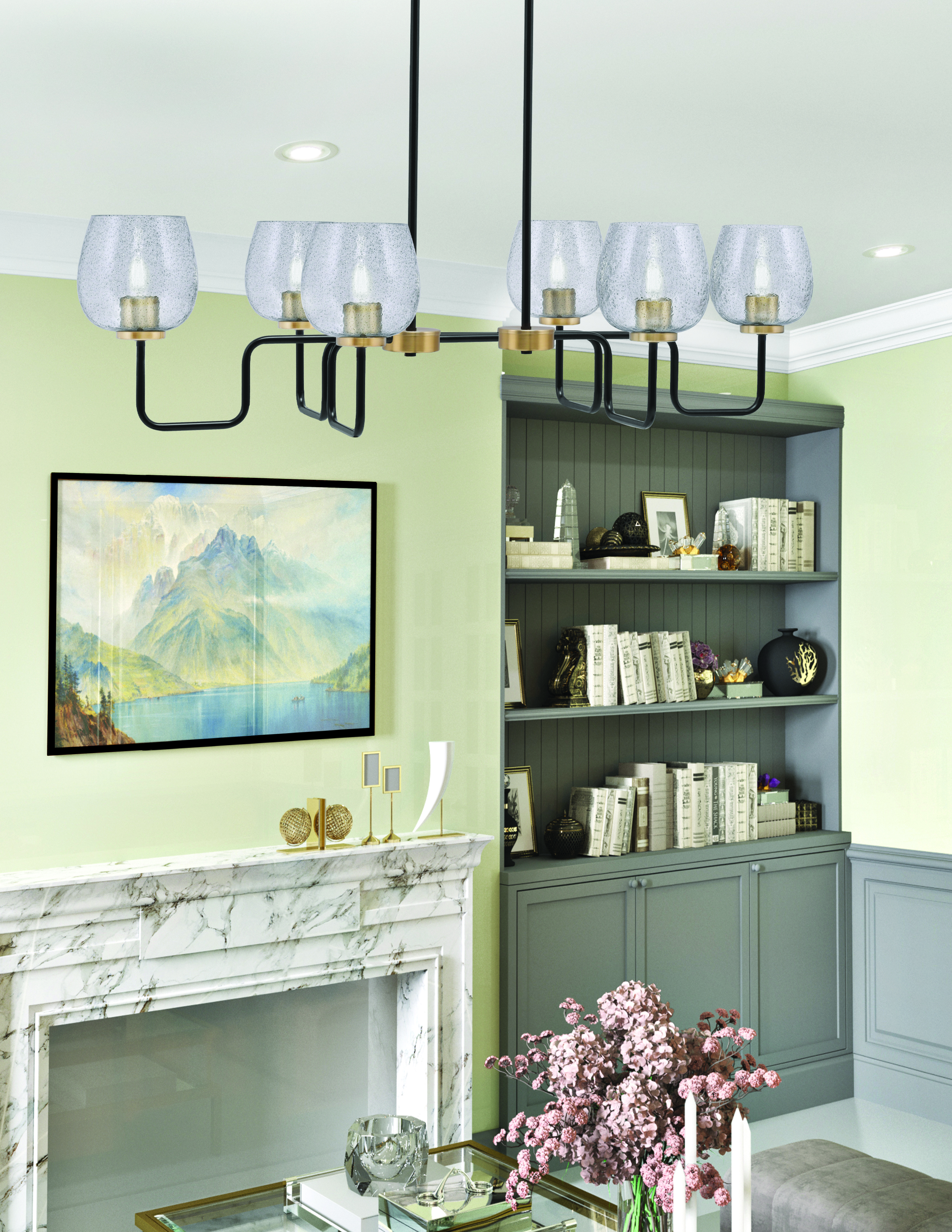 Bring a bold yet sophisticated statement to your space with the Sandia 6 Light Island Light. Featuring a sleek Matte Black frame with warm New Age Brass accents, this fixture blends industrial character with modern elegance. The 6″ Smoke Bubble Glass shades introduce a touch of artistry, diffusing light beautifully while adding subtle texture and depth.