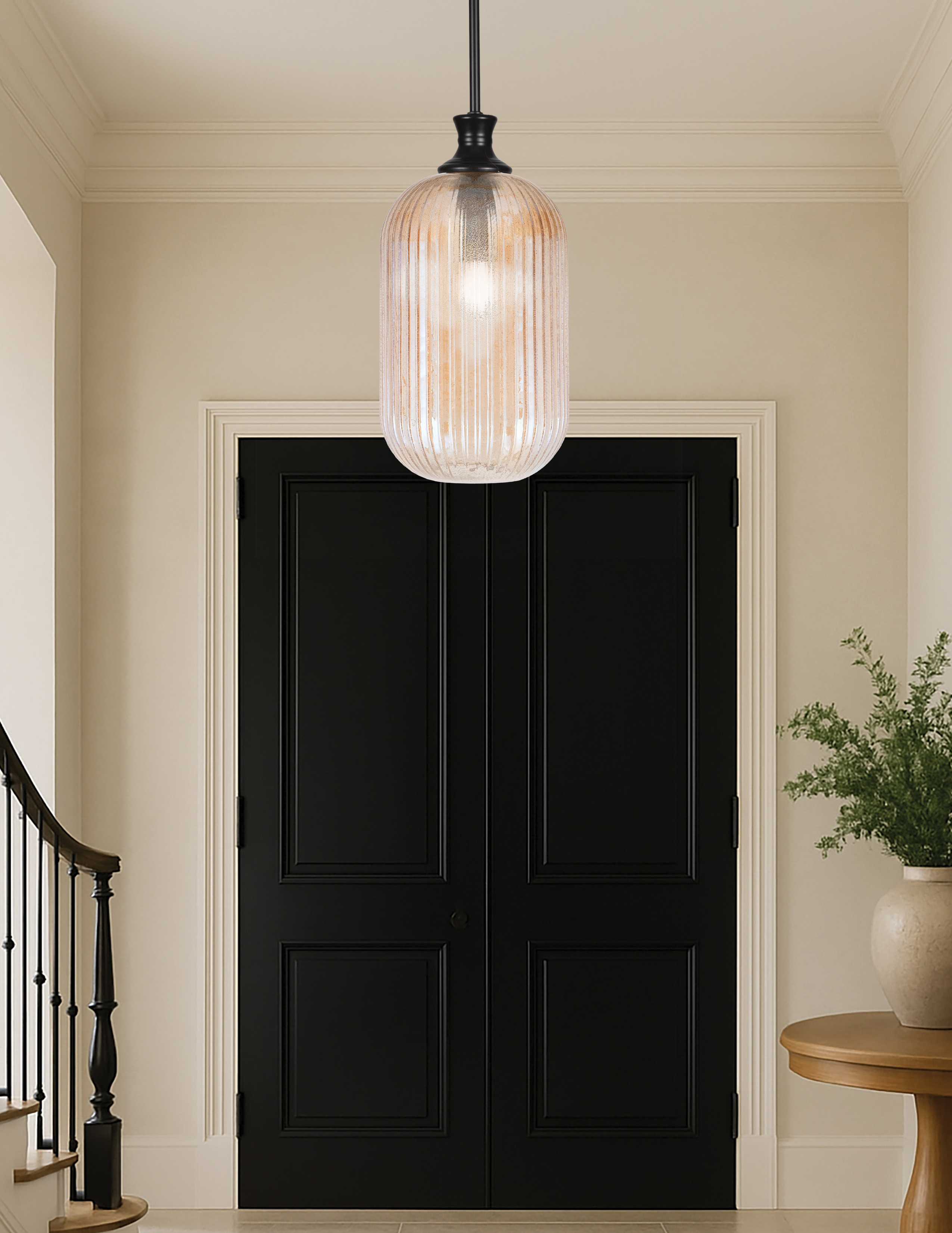 Make a bold statement with the Stem Hung Mini Pendant, combining modern elegance with eye-catching design. The sleek Matte Black Finish provides a contemporary frame, while the 8.25″ Amber Micro Bubble Ribbed Glass shade creates a stunning visual effect, diffusing light with depth and warmth. Ideal for kitchens, dining areas, or accent lighting, this pendant adds character and sophistication to any space.