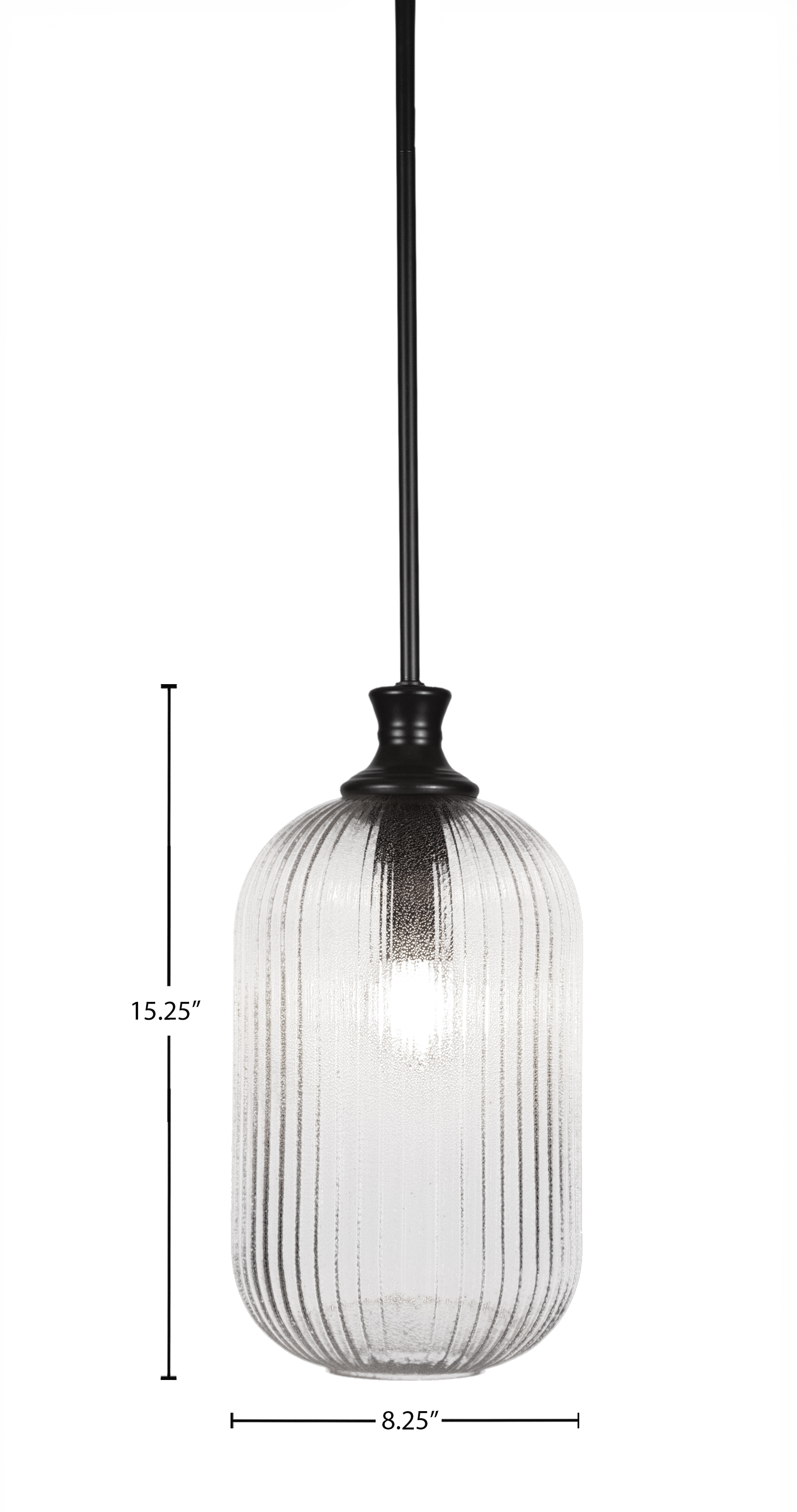 Toltec Lighting 74-MB-4608 Carina Stem Hung Pendant, Matte Black Finish, 8.25″ Micro Bubble Ribbed Glass