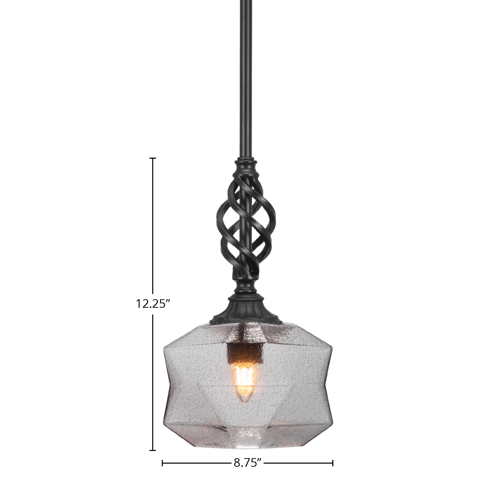 Toltec Lighting 80-MB-4492 Elegante Stem Hung Mini Pendant, Matte Black Finish, 8.75″ Smoke Glass
