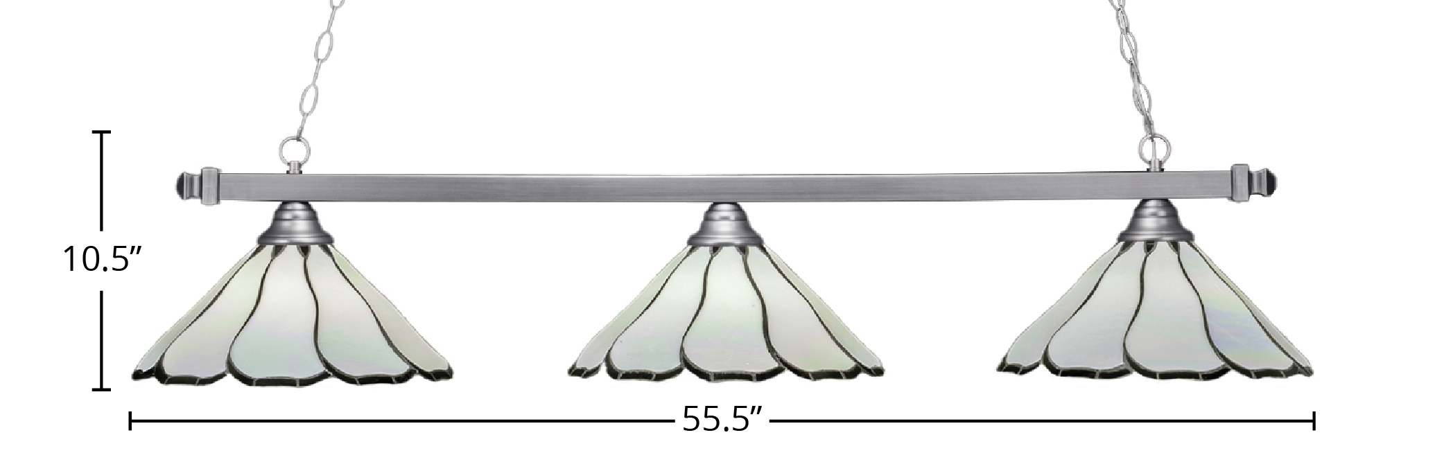 Introducing The Square 3 Light Bar, Elegantly Shown In A Beautiful Brushed Nickel Finish. This Stunning Light Fixture Features Artistic 16″ Pearl & Black Flair Art Glass, Adding A Touch Of Sophistication To Any Space. Perfect For Modern Interiors, This Piece Delivers Both Style And Functionality With Its Unique Design.