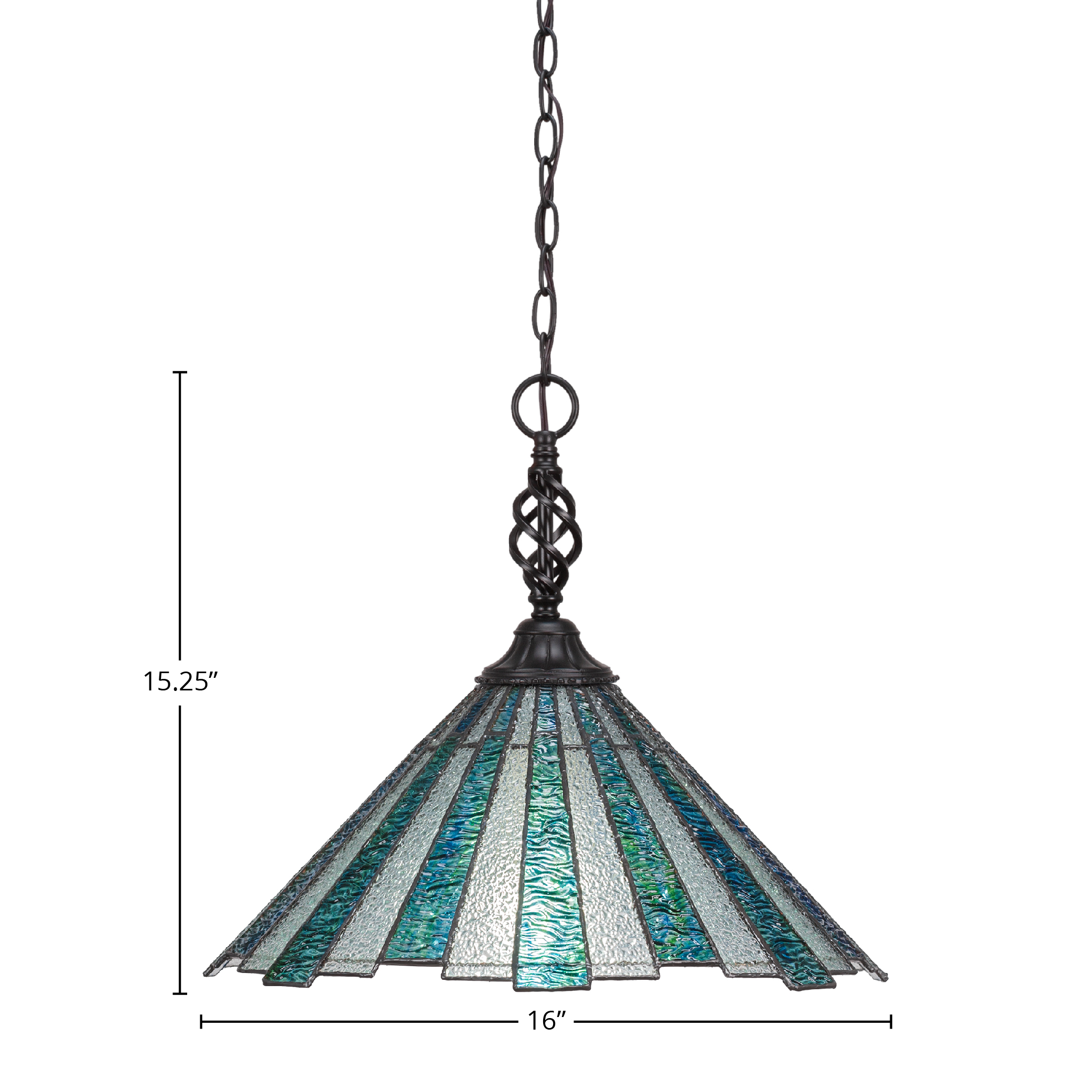 Toltec Lighting 82-MB-932 Elegante Chain Pendant, Matte Black Finish, 16″ Sea Ice Art Glass