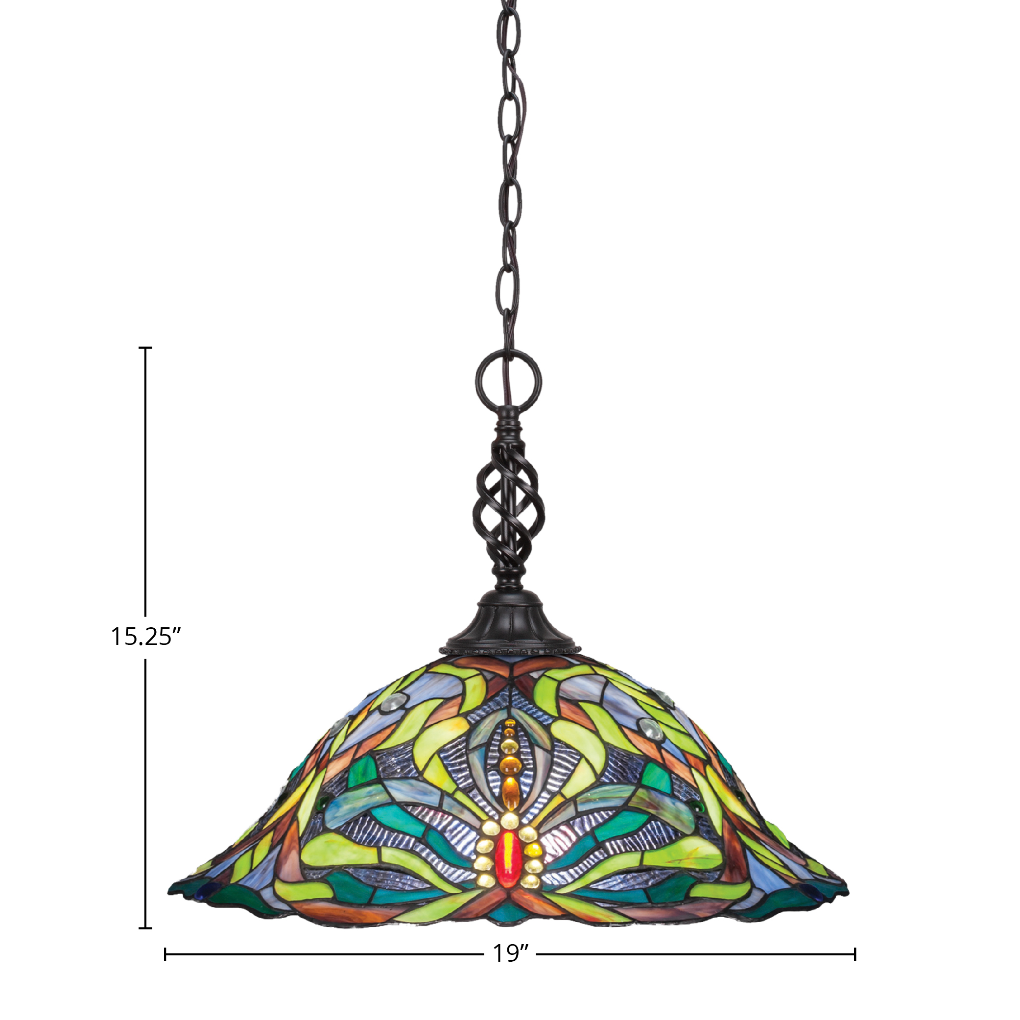 Toltec Lighting 82-MB-990 Elegante Chain Pendant, Matte Black Finish, 19″ Kaleidoscope Art Glass