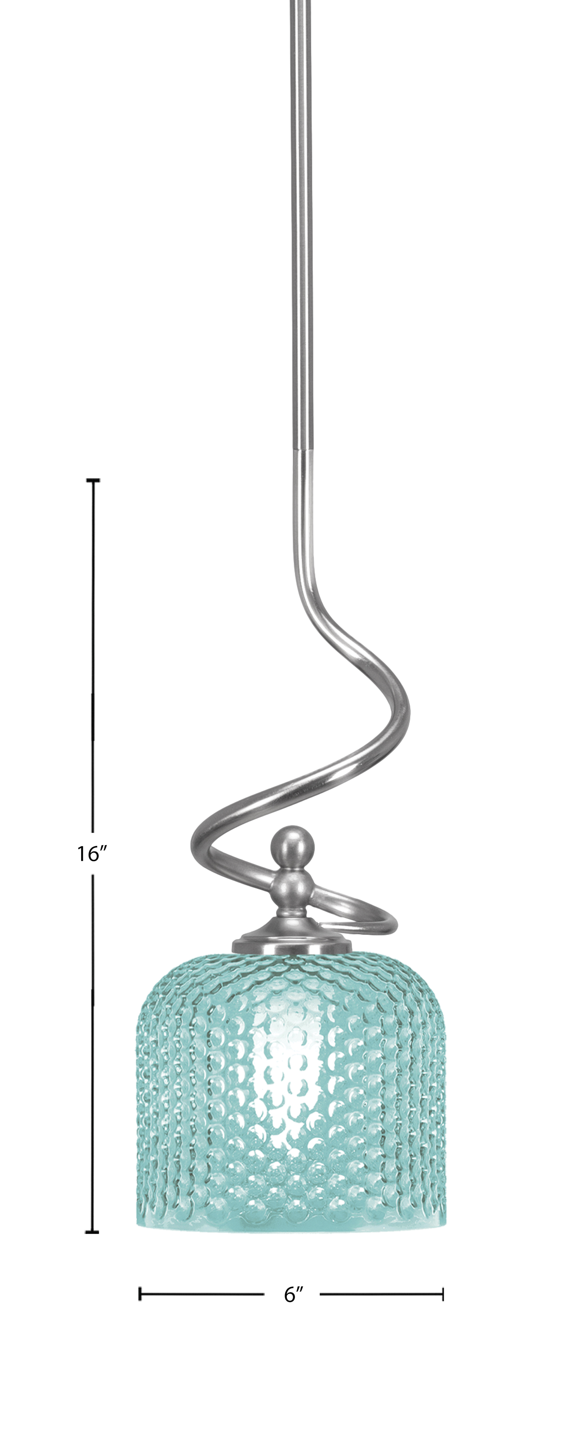 Brighten your space with the stylish Capri Stem Hung Mini Pendant in a Brushed Nickel Finish. Featuring a vibrant 6″ Turquoise Textured Glass shade, this pendant adds a pop of color and intricate texture, casting a soft, inviting glow. Perfect for kitchen islands, bars, or accent lighting, its sleek stem-hung design offers a modern silhouette that fits seamlessly into both contemporary and transitional interiors.