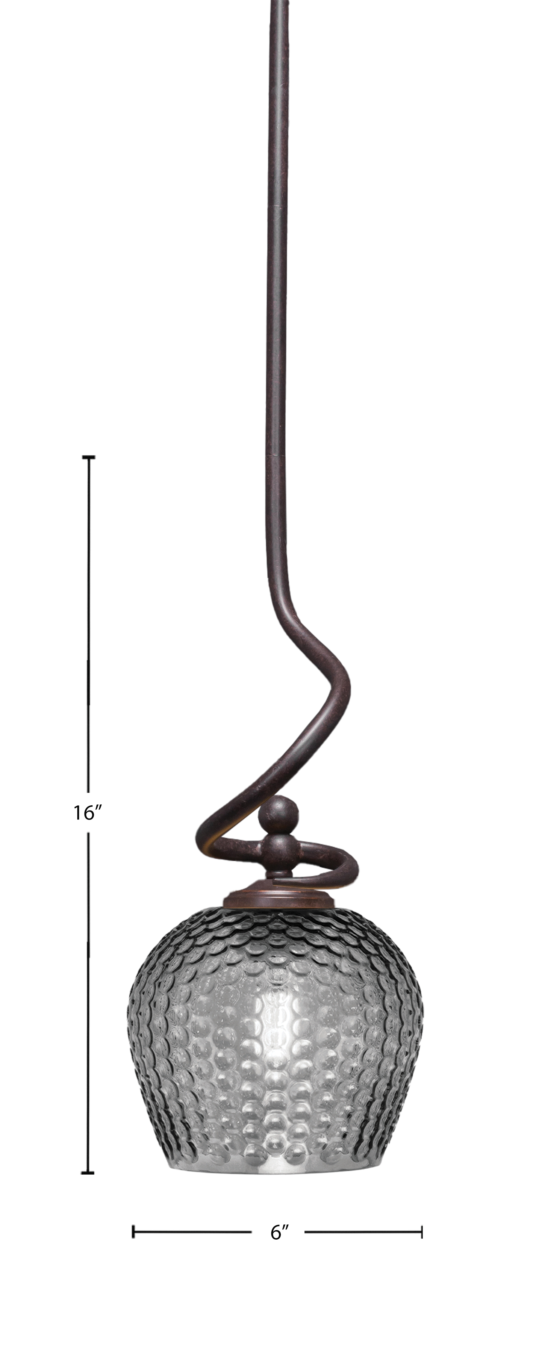 Toltec Lighting 901-DG-4602 Capri Stem Hung Mini Pendant, Dark Granite Finish, 6″ Smoke Textured Glass