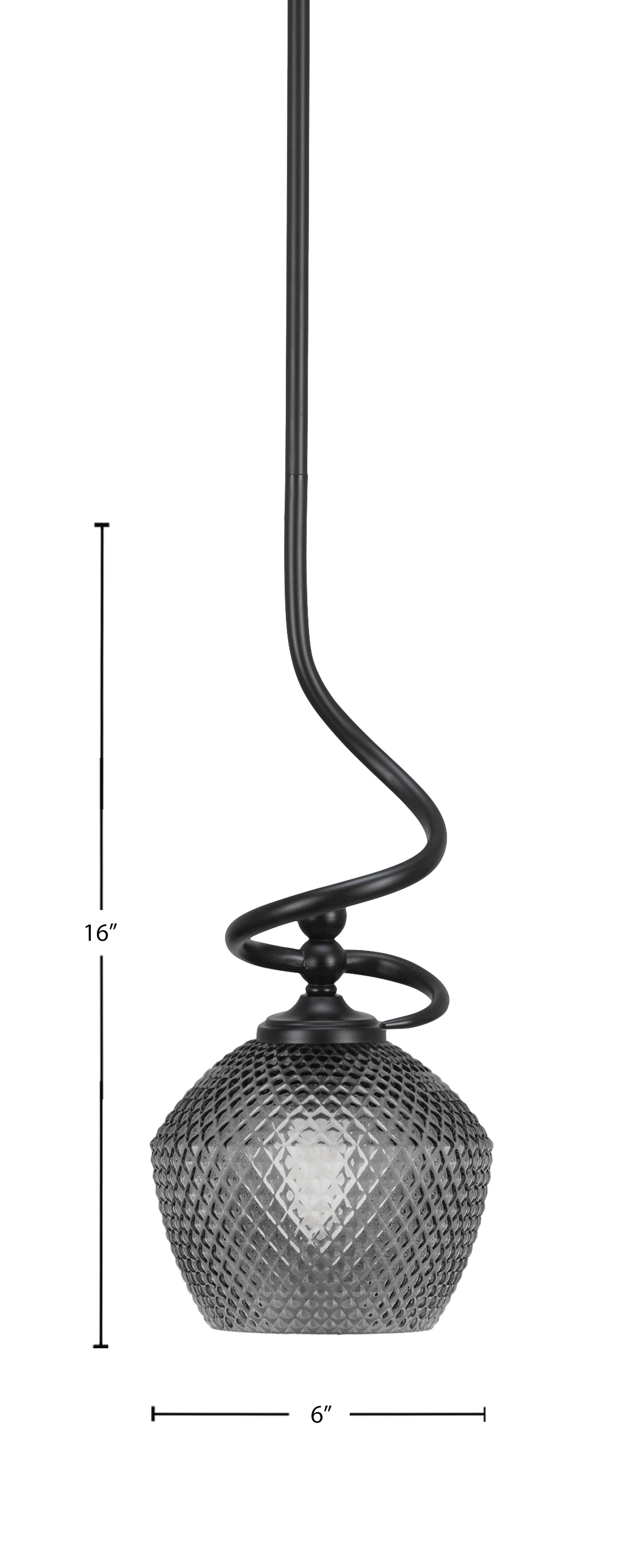 Toltec Lighting 901-MB-4622 Capri Stem Hung Mini Pendant, Matte Black Finish, 6″ Smoke Textured Glass