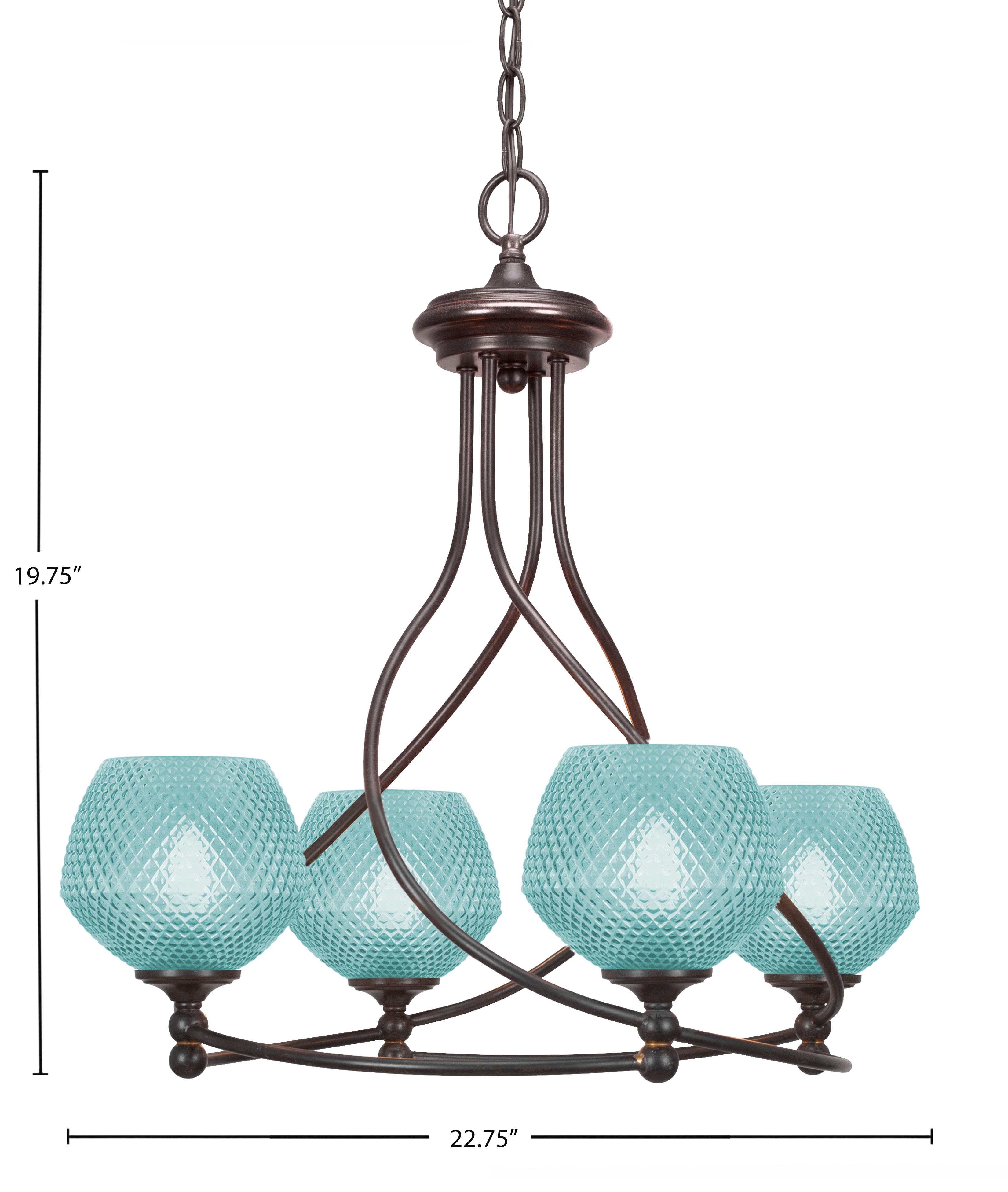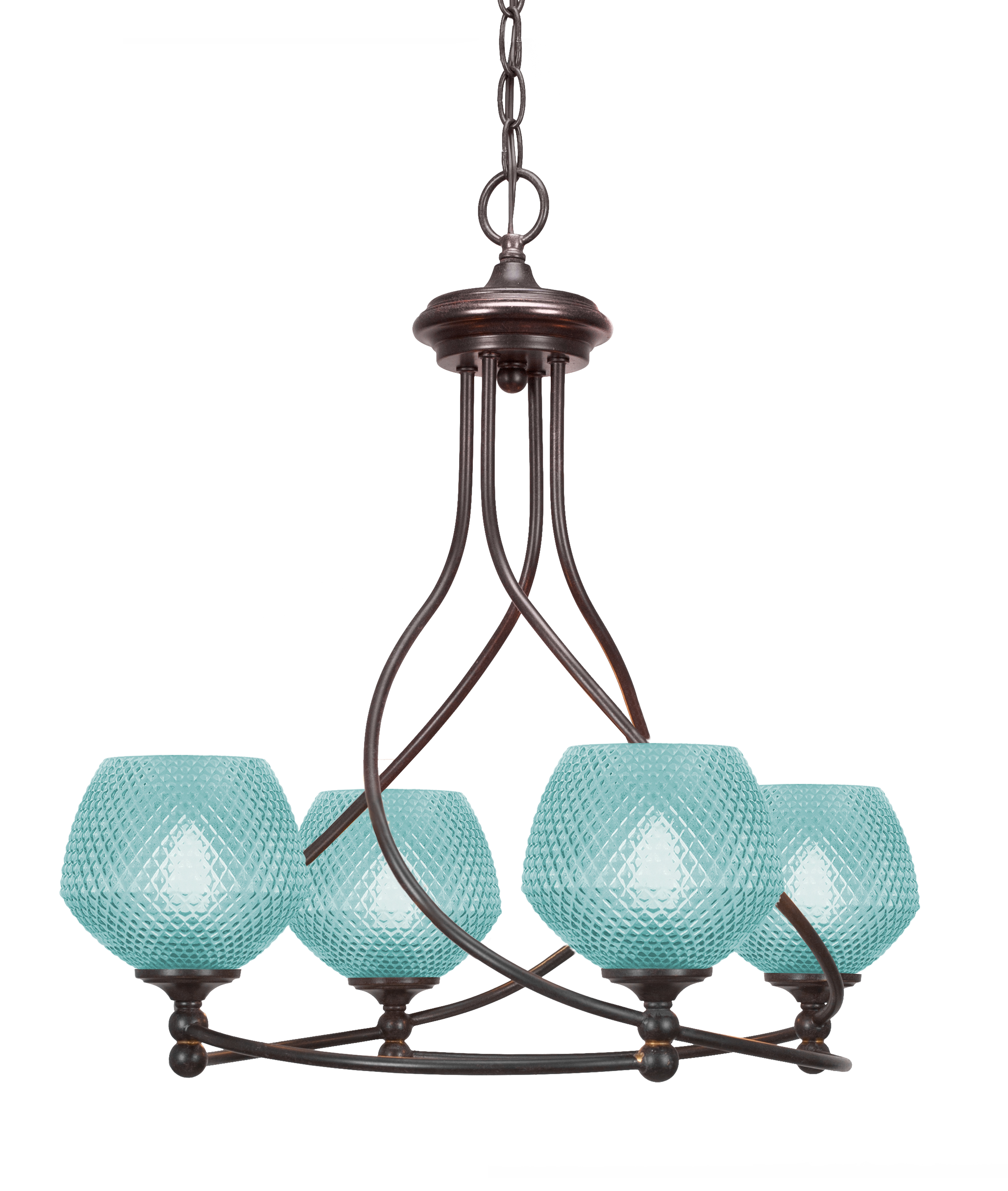 Toltec Lighting 904-DG-4625 Capri 4 Light Uplight Chandelier, Dark Granite Finish, 6″ Turquoise Textured Glass