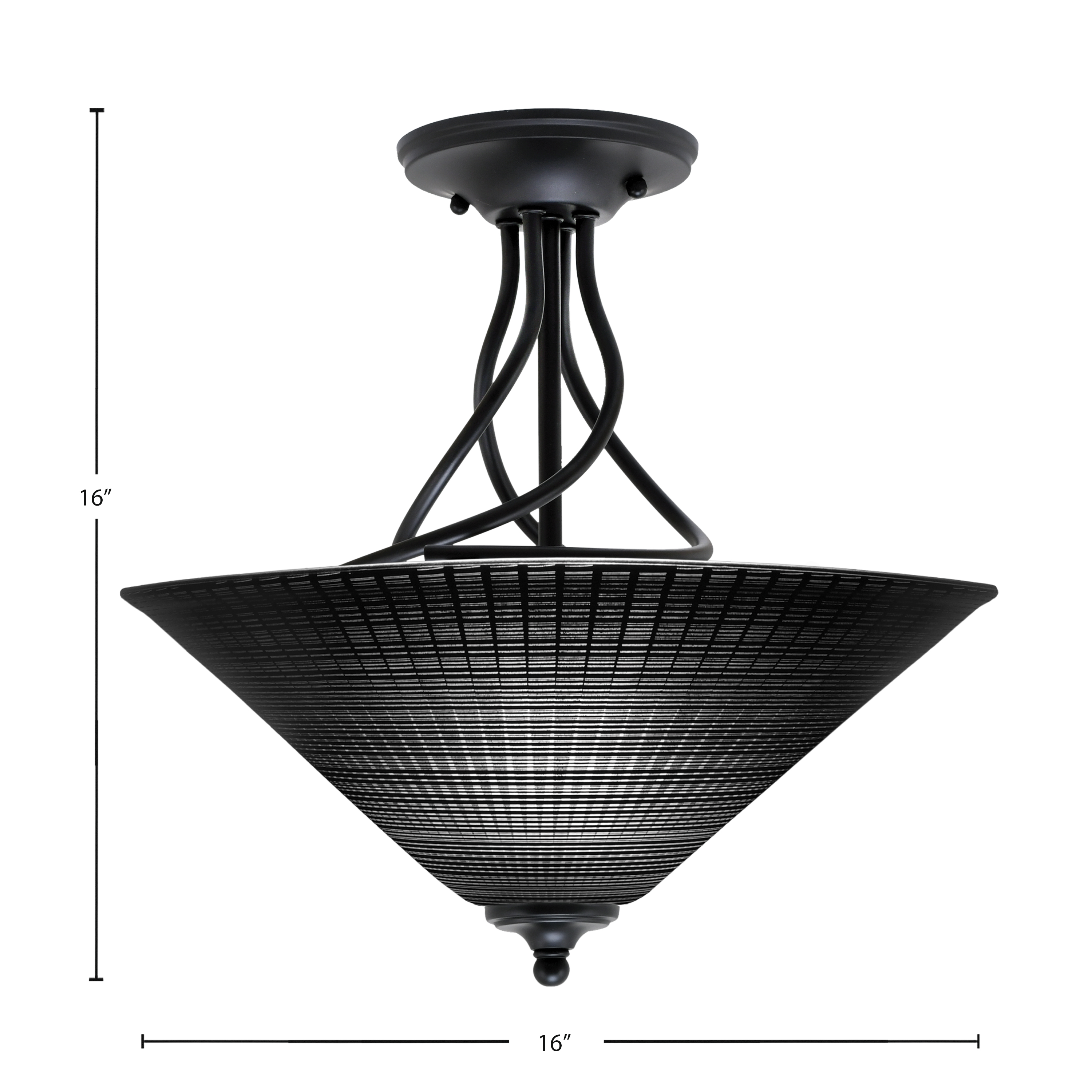 Toltec Lighting 909-MB-4019 Capri Semi-Flush, 3-Bulbs, Matte Black Finish, 16″ Black Matrix Glass