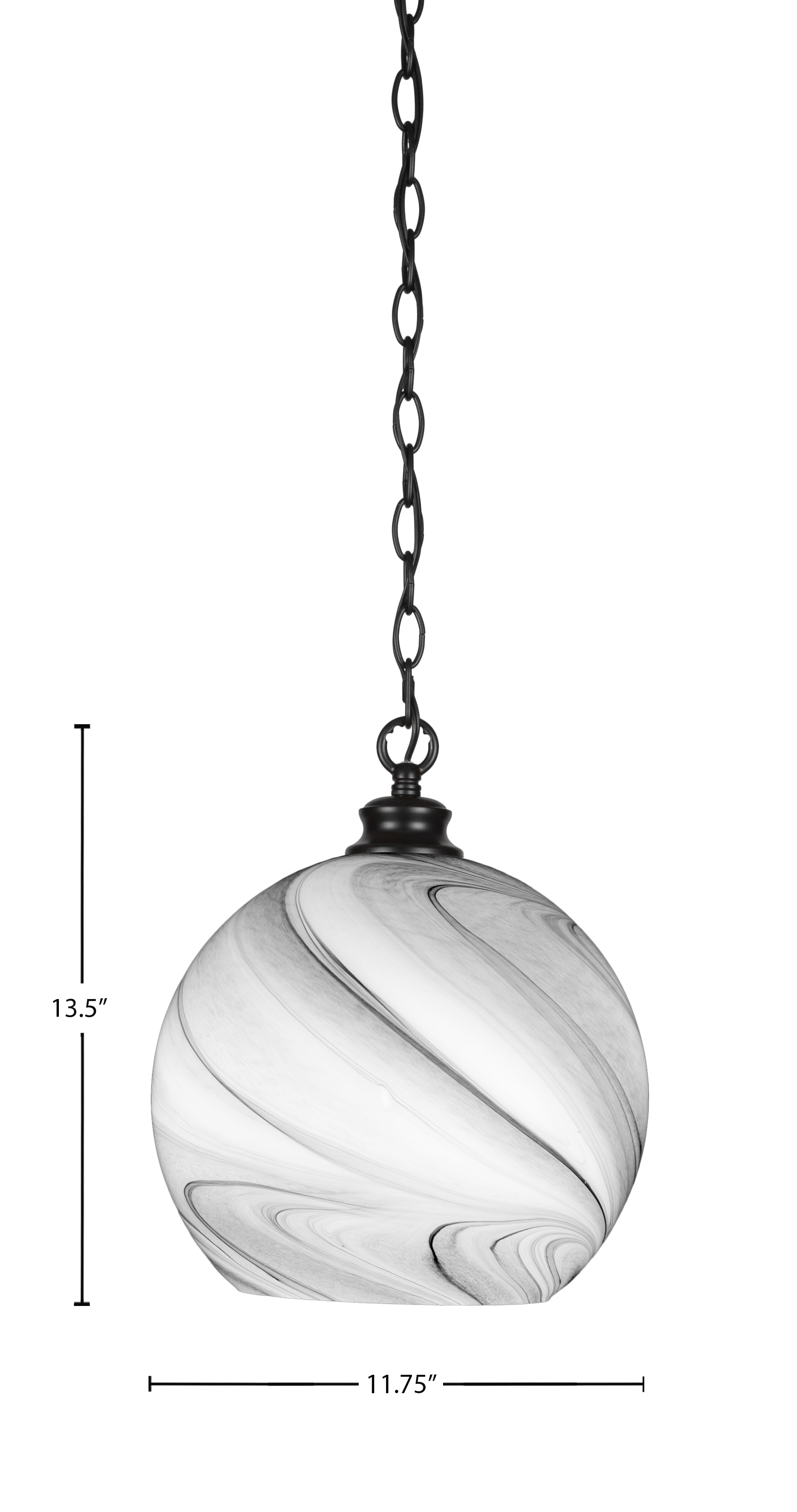 The Kimbro Chain Hung Pendant Is A Striking Addition To Any Space, Featuring A Matte Black Finish That Exudes Elegance And Sophistication. The 11.75″ Onyx Swirl Glass Creates A Beautifully Soft Glow, Perfect For Setting The Mood In Living Rooms, Dining Areas, Or Entrances. With Its Unique Design And High-Quality Materials, This Pendant Light Combines Style And Functionality In A Truly Stunning Way.